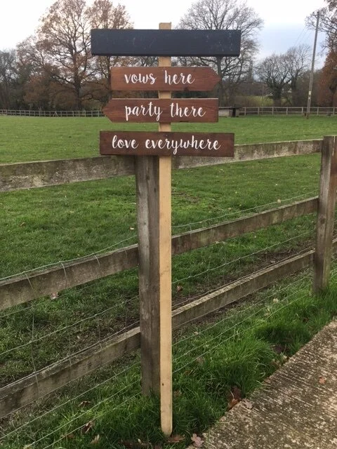 Wedding Signs & Event Signs to hire in Sussex, Surrey, Kent, Hampshire & London › Vows Here - Party Here Festival Sign Image 1 of 1 Vows Here - Party Here Festival Sign £10.25 This fun sign is perfect for a festival style wedding. Quantity: Add To Cart Added! This fun sign is perfect for a festival style wedding.