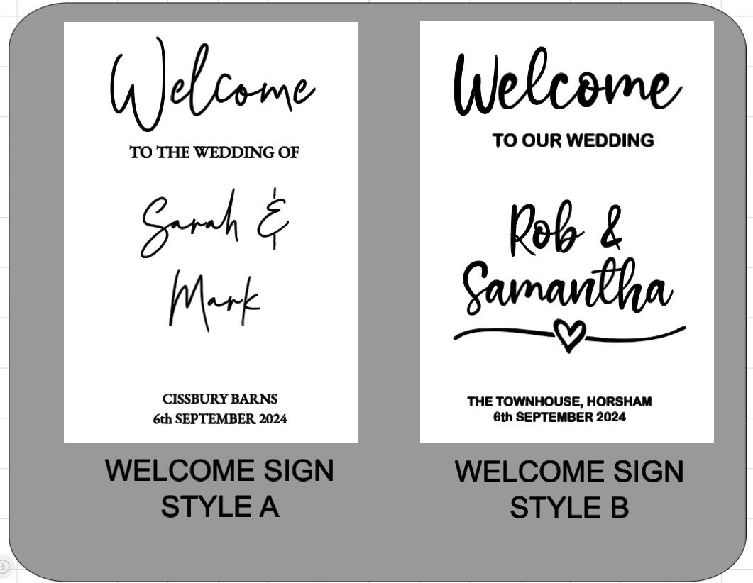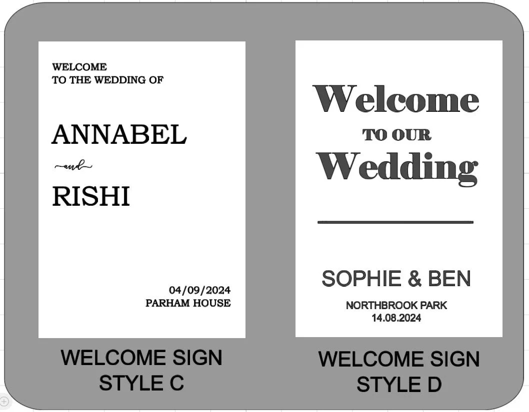 If you’re looking for something a little more personal or unique, we also offer a bespoke design service. This is a lovely option if you’d like your signage to truly reflect your style and tie seamlessly into your overall wedding design. There is an additional charge for this service.